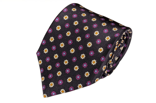 MILANO SERIES ネクタイ ◆ 花柄 (ネイビー×パープル)《セッテピエゲ》