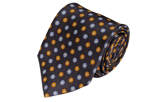 MEROLA SERIES ネクタイ ◆ 花小紋(ネイビー・オレンジ)《50オンス》